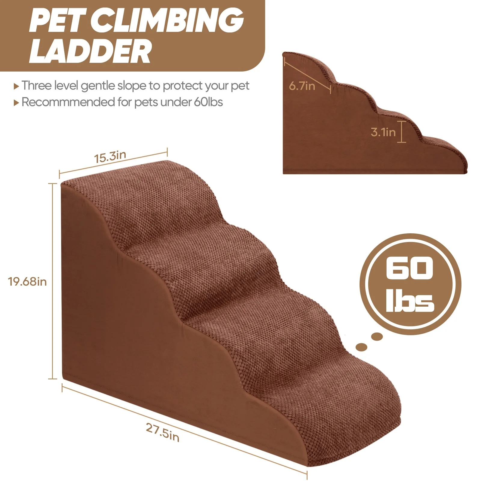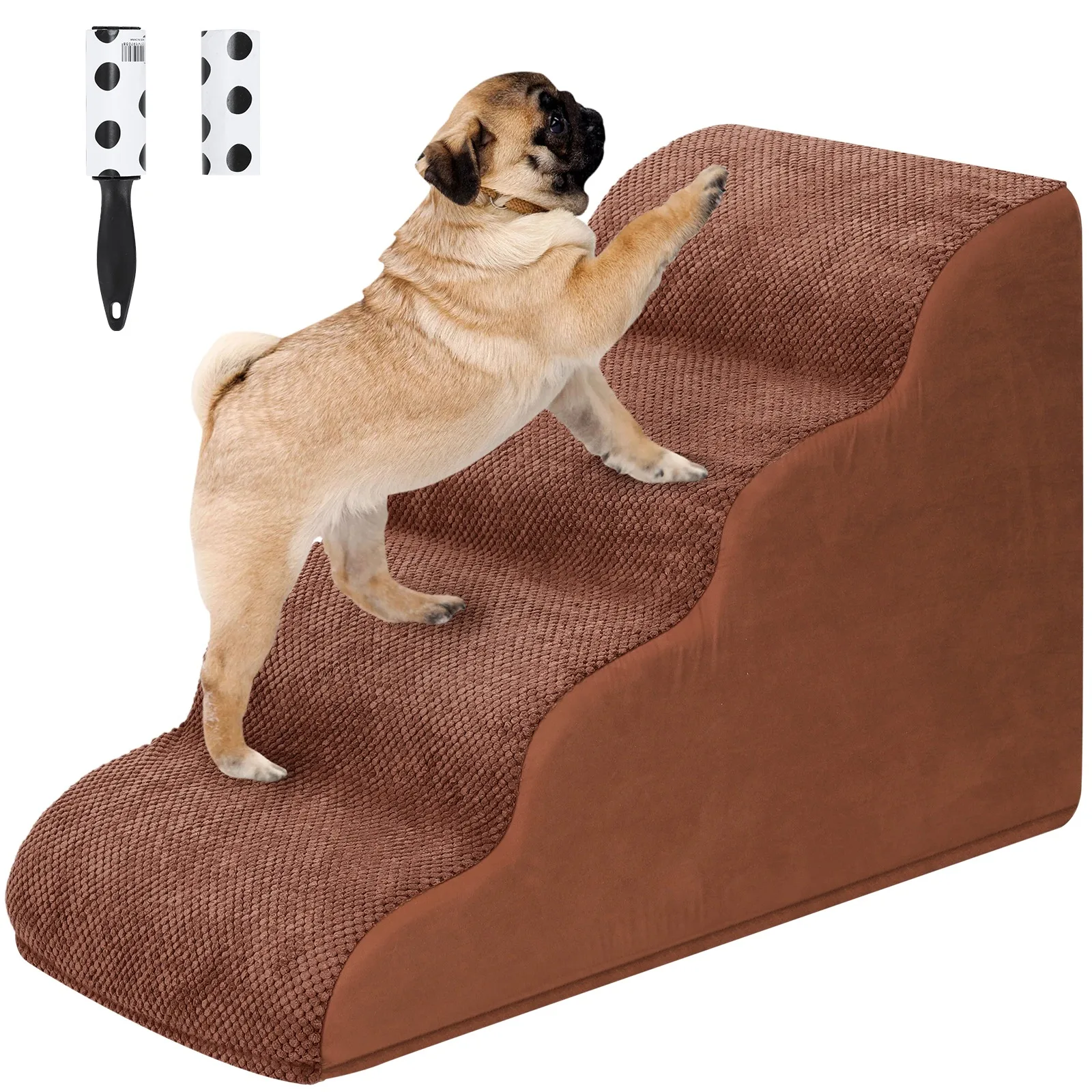4 Steps Dog Ramp/Stairs for Beds and Couches,Pet Stairs with High Density Expand Immediately Foam,Washable Cover
