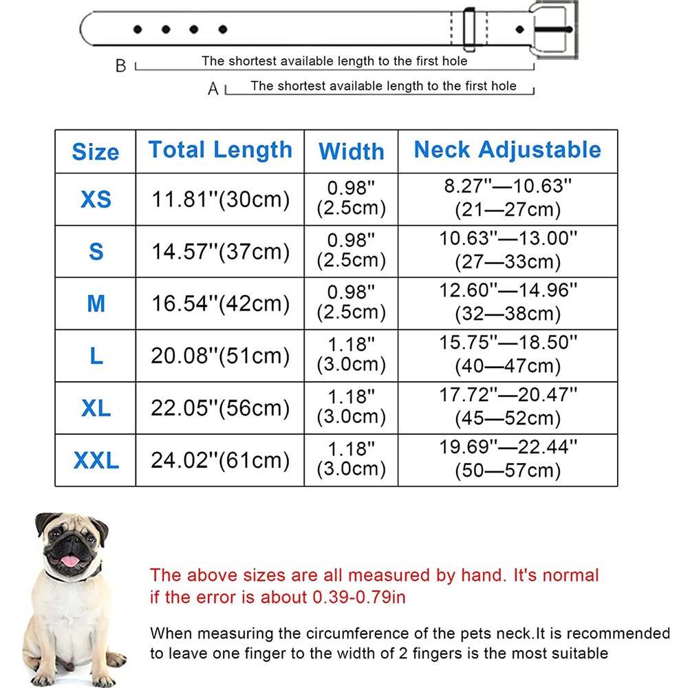 ♥ Our dog collars come in 6 sizes and 15 colors. Whether your pet is small, medium, or large, you can find one that is right for your pet. Don't forget checking the pet's exact neck size before you confirm the order.