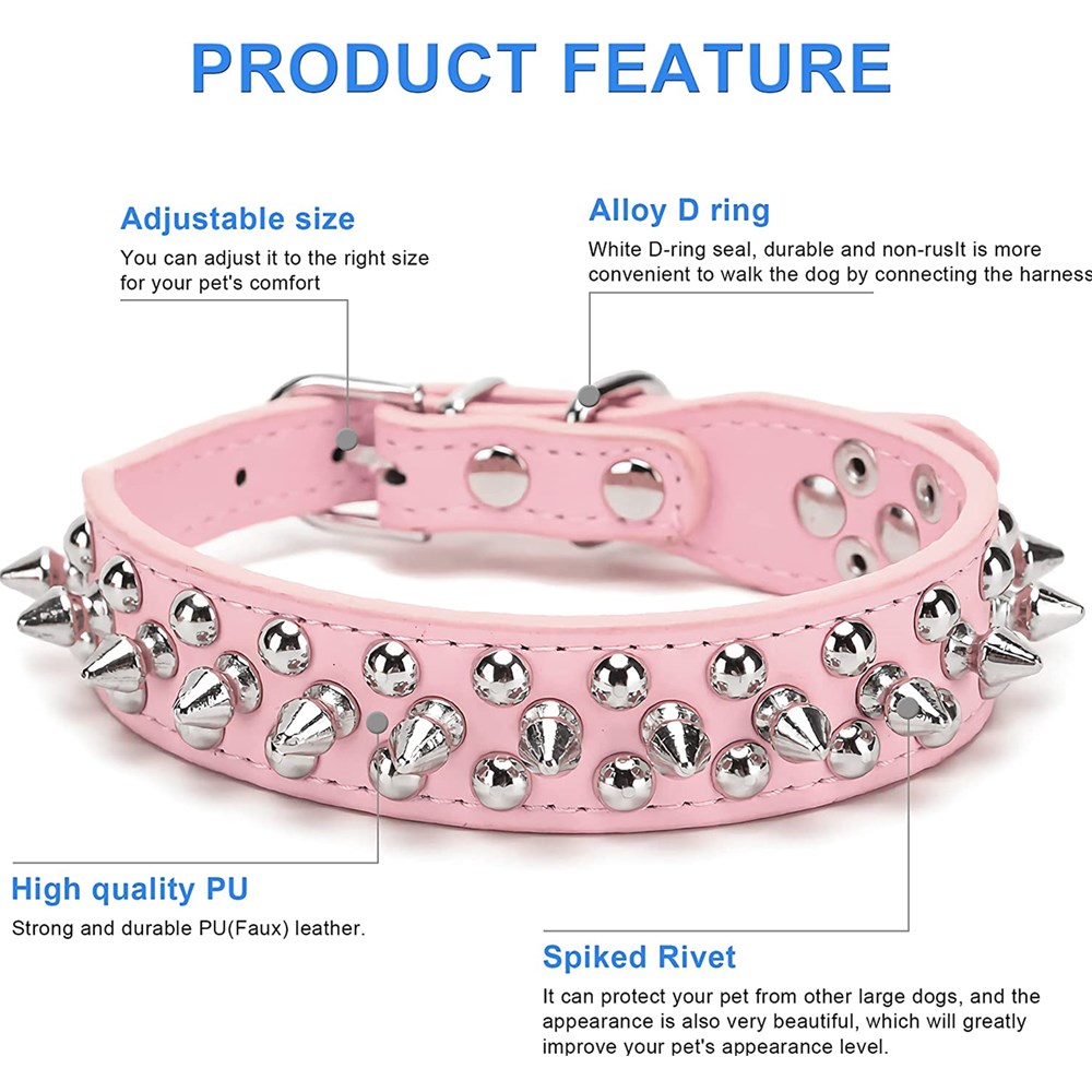 Product Name: Dog Collar Adjustable Padded PU Leather Puppy Collars Neck Protection Anti-Bite Multi Colors & Sizes for Small Medium Large Pets for Outdoor Studded Pet Collar