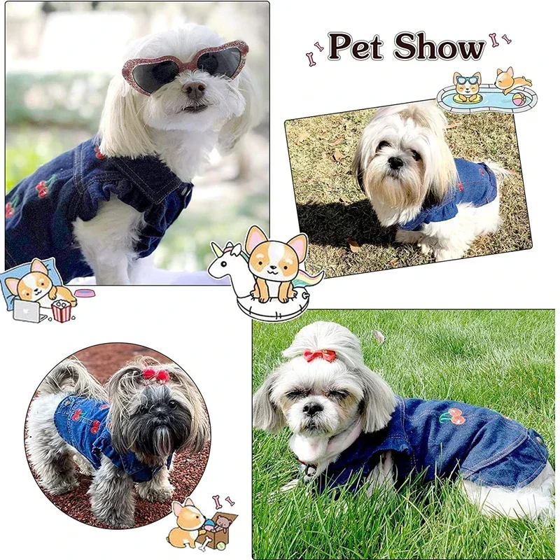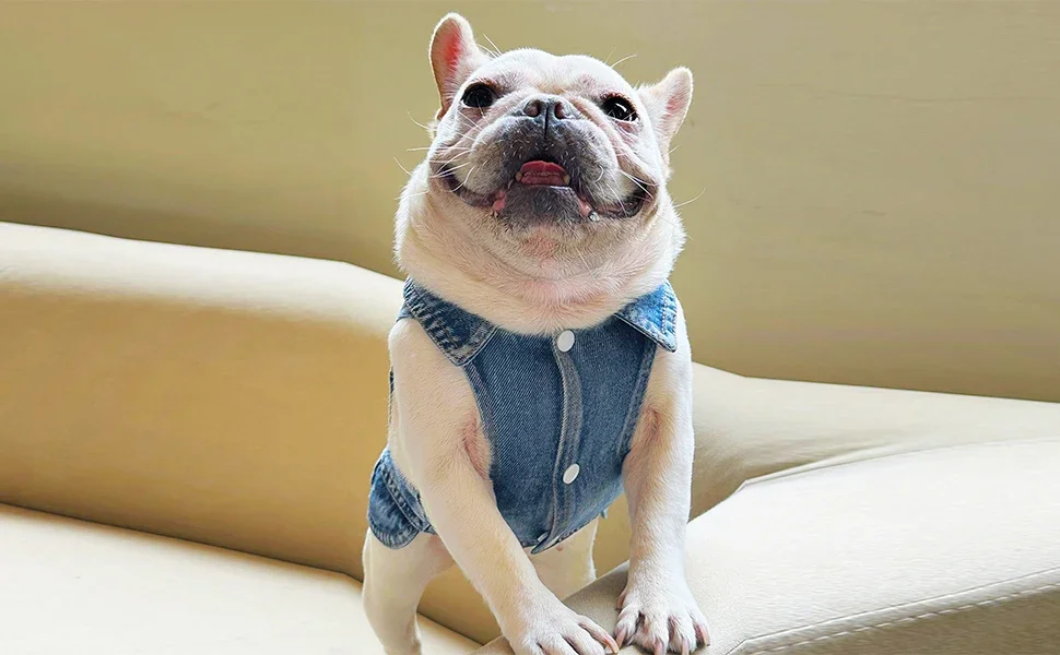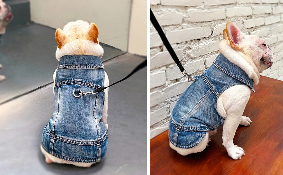 Cool Dog Jean Jacket Vest with D-Ring Blue Denim Dogs Outfits for Small Medium Dogs Puppy Harness Yorkie Coat for Walking