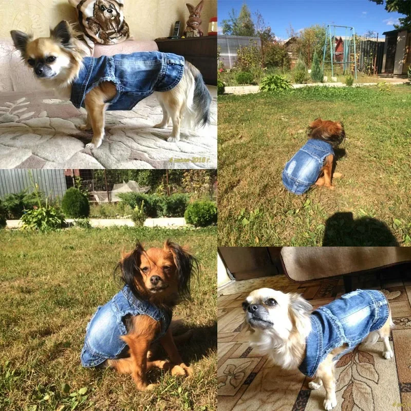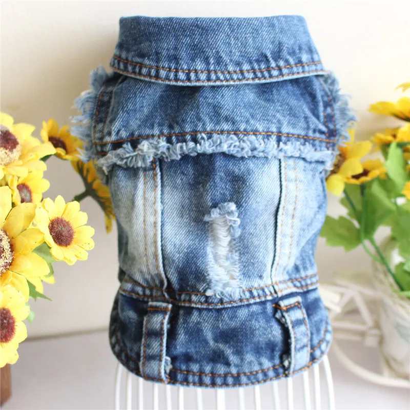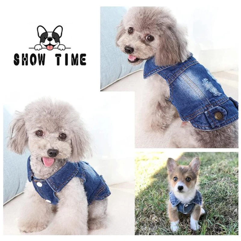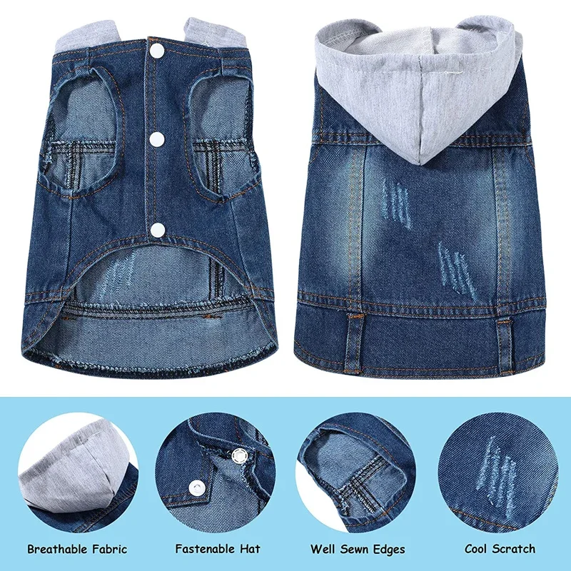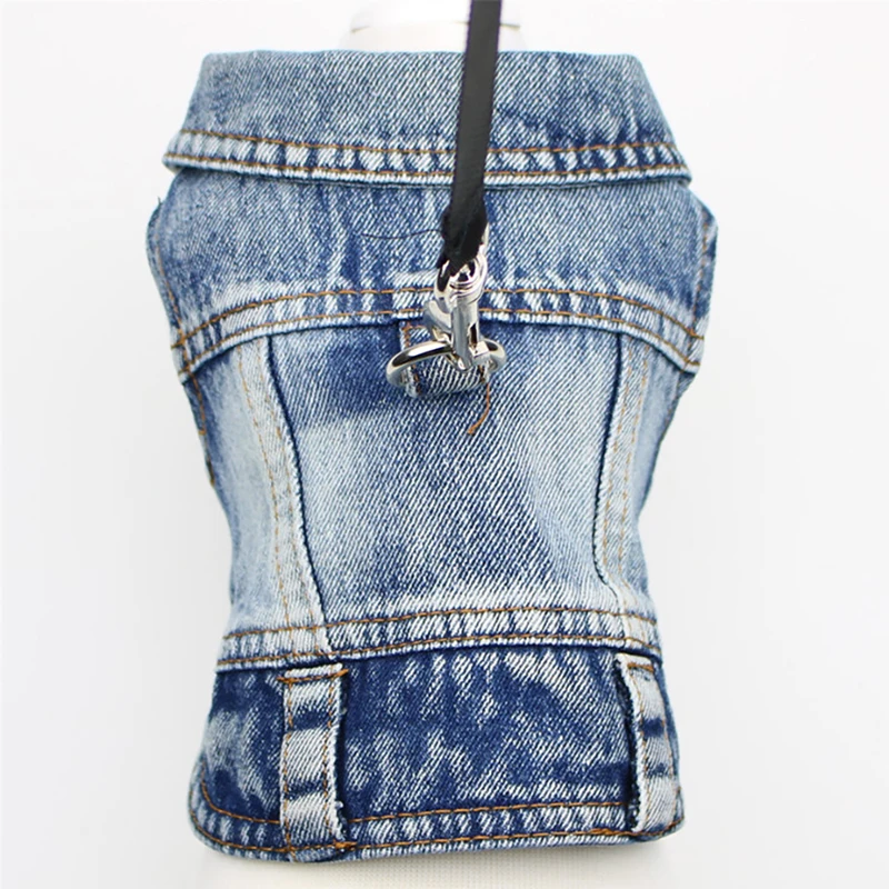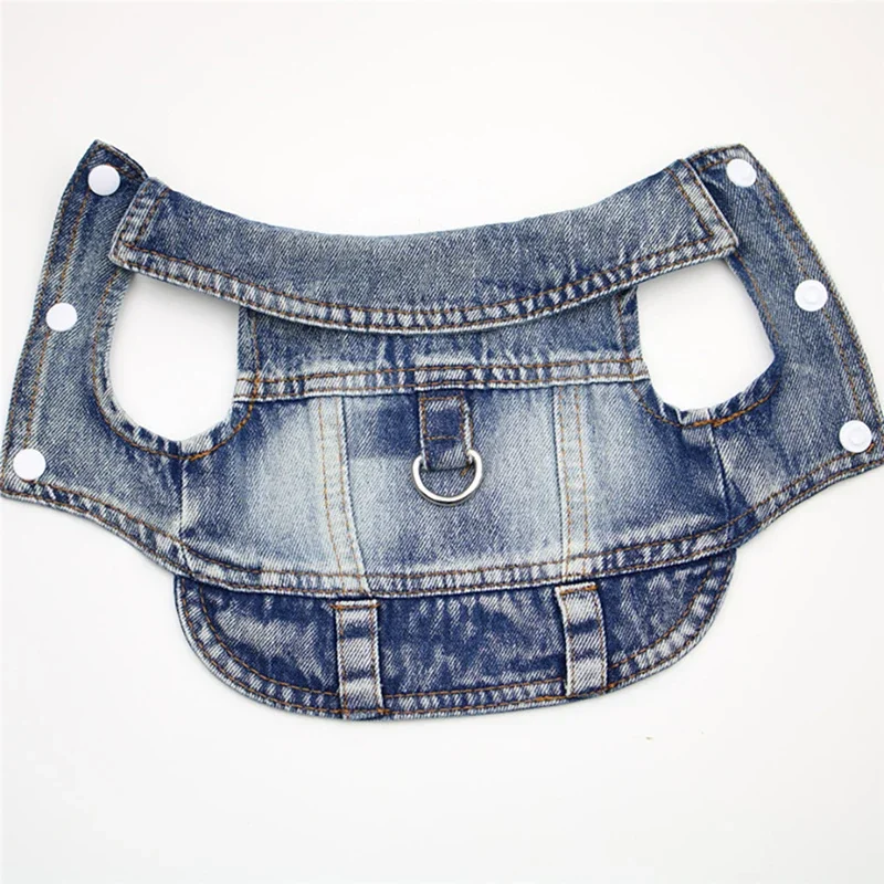 Cool Dog Jean Jacket Vest with D-Ring Blue Denim Dogs Outfits for Small Medium Dogs Puppy Harness Chihuahua Coat for Walking
